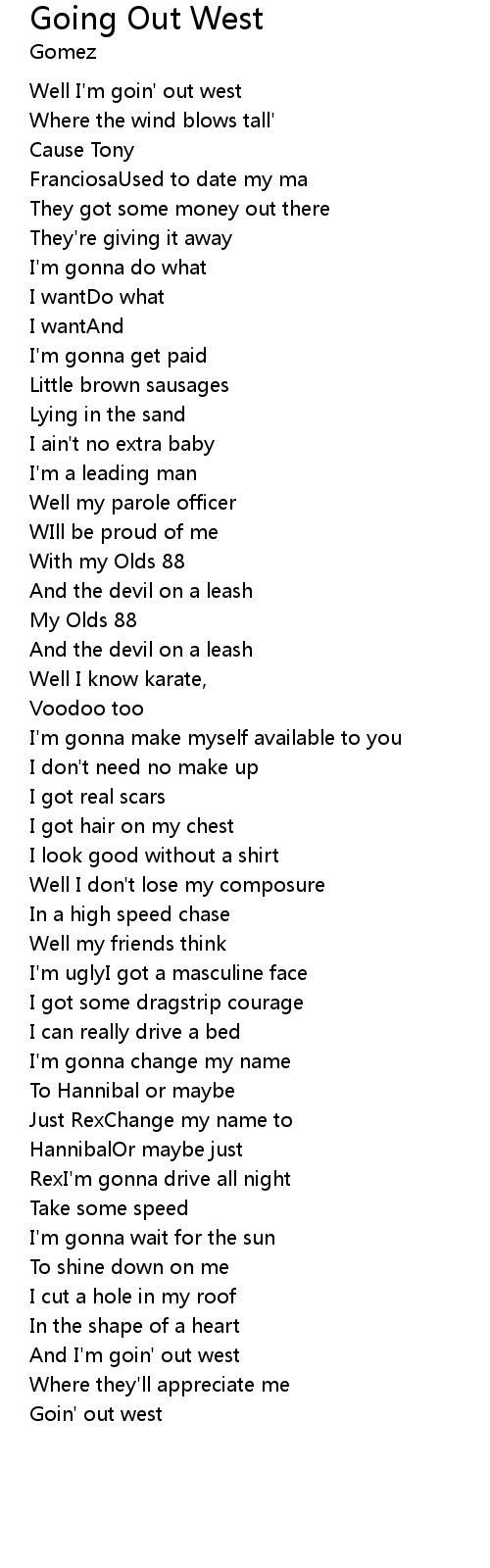 | Well I'm goin' out west | |
