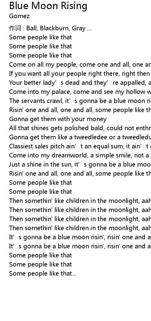 | Just a shine in the sun, it' s gonna be a blue moon risin' | |