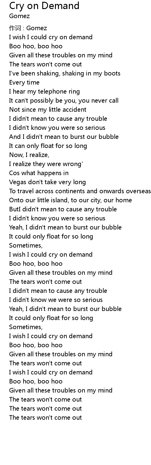 | Song | Cry on Demand |