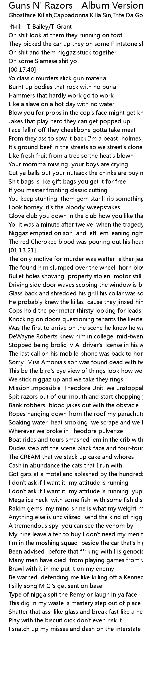 | [02:34.14] | Anything else is uncivilized send the kind of niggaz |