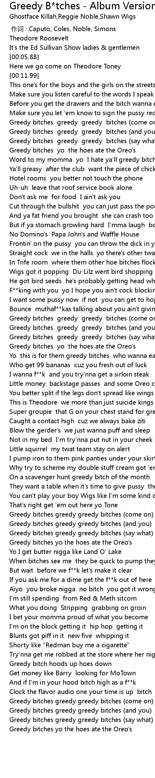 | [02:24.78] | Greedy bitches greedy greedy bitches come on |