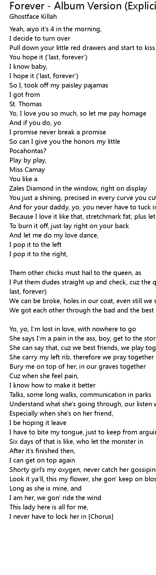 We got each other through the bad and the best of time (Last, forever, last, forever) [Ghostface Killah] |