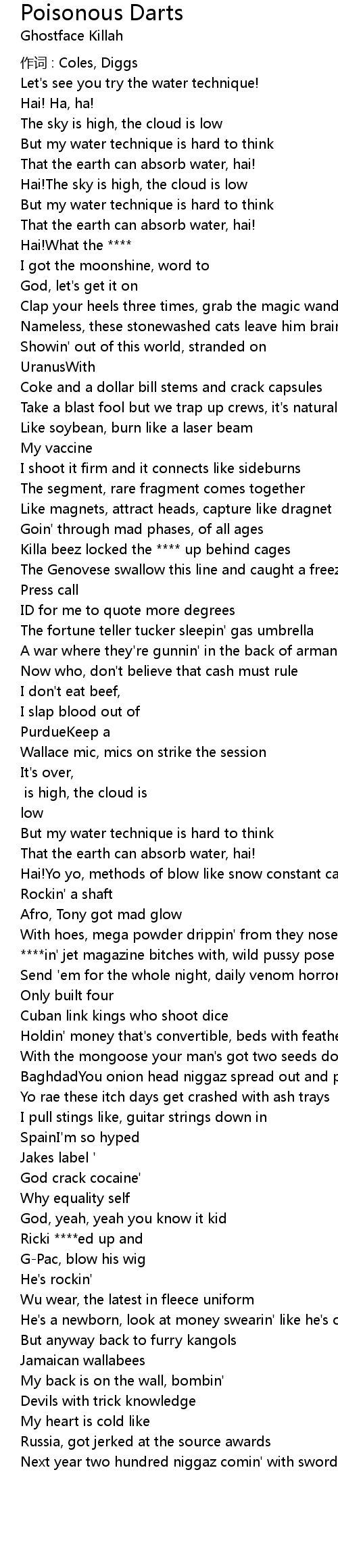 | I file this and glow like fluorescent Incomprehensible is high, the cloud is low | |