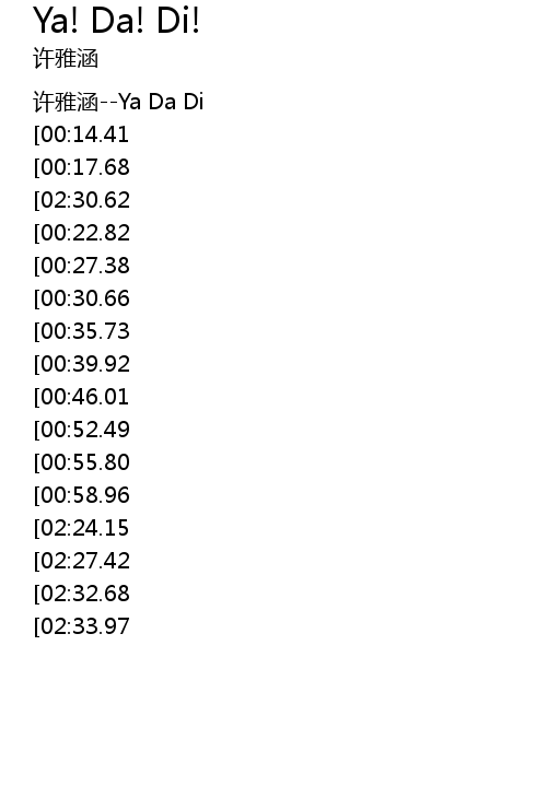 | [00:00.00] | 许雅涵--Ya Da Di |