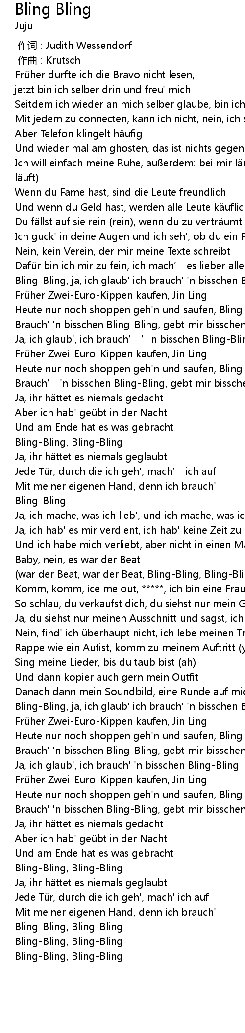 | [01:33.78] | Bling-Bling, ja, ich glaub' ich brauch' 'n bisschen Bling-Bling |
