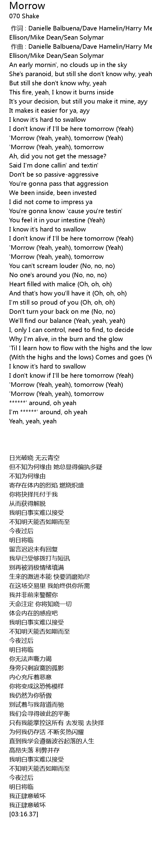 | [02:53.34] | ' Morrow Yeah, yeah, tomorrow Yeah |