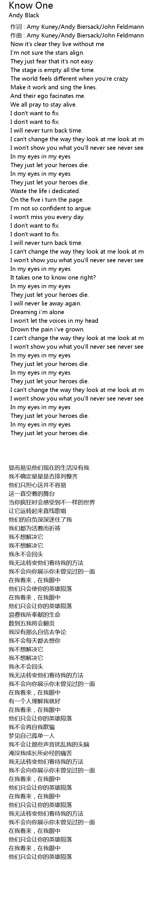 | [00:00.000] | 作词 : Amy Kuney/Andy Biersack/John Feldmann |