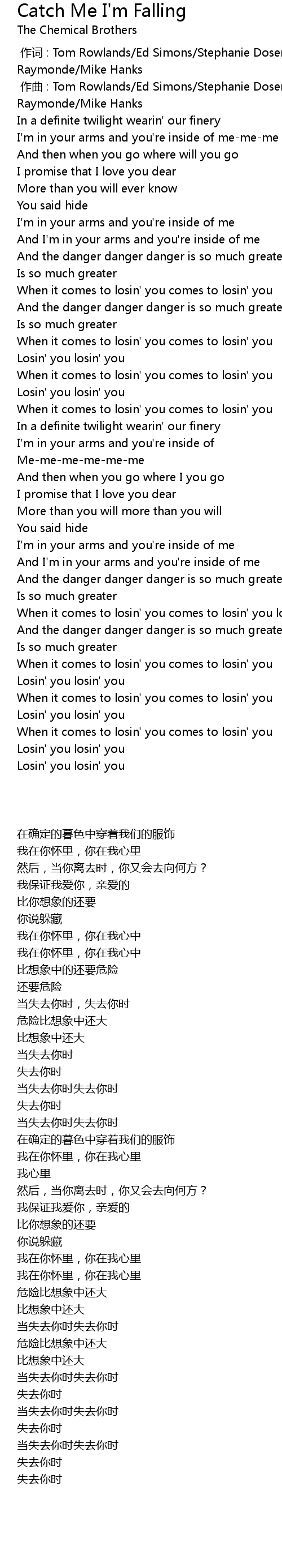 | [00:00.000] | 作词 : Tom Rowlands/Ed Simons/Stephanie Dosen/Simon Philip Raymonde/Mike Hanks |