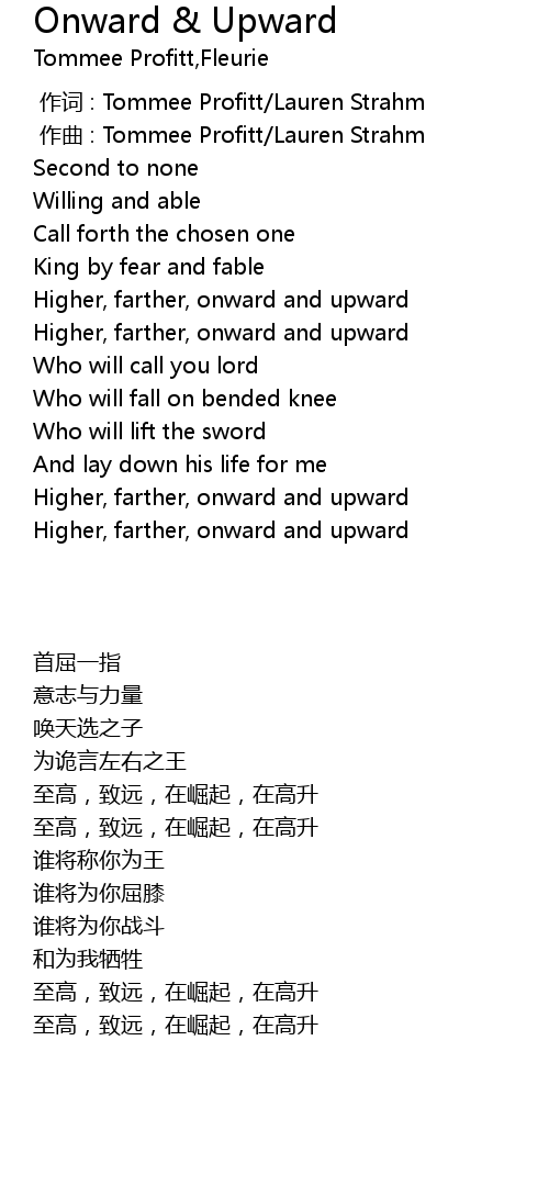 | [01:33.710] | Higher, farther, onward and upward |