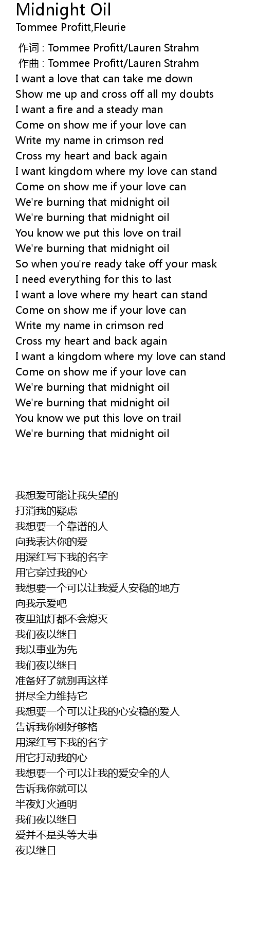 | [00:45.884] | We' re burning that midnight oil |