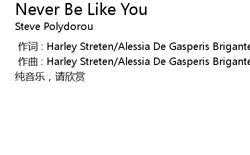 | [00:01.000] | 作曲 : Harley Streten/Alessia De Gasperis Brigante/Geoffrey Earley |