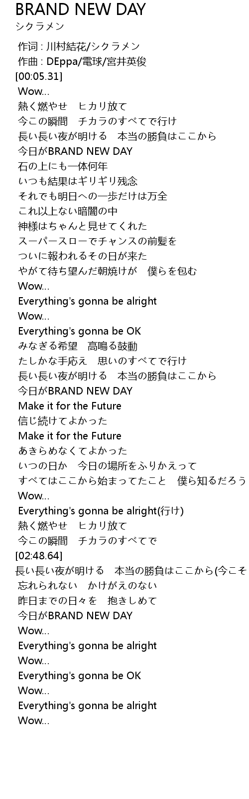 | [03:05.73] | 今日がBRAND NEW DAY |