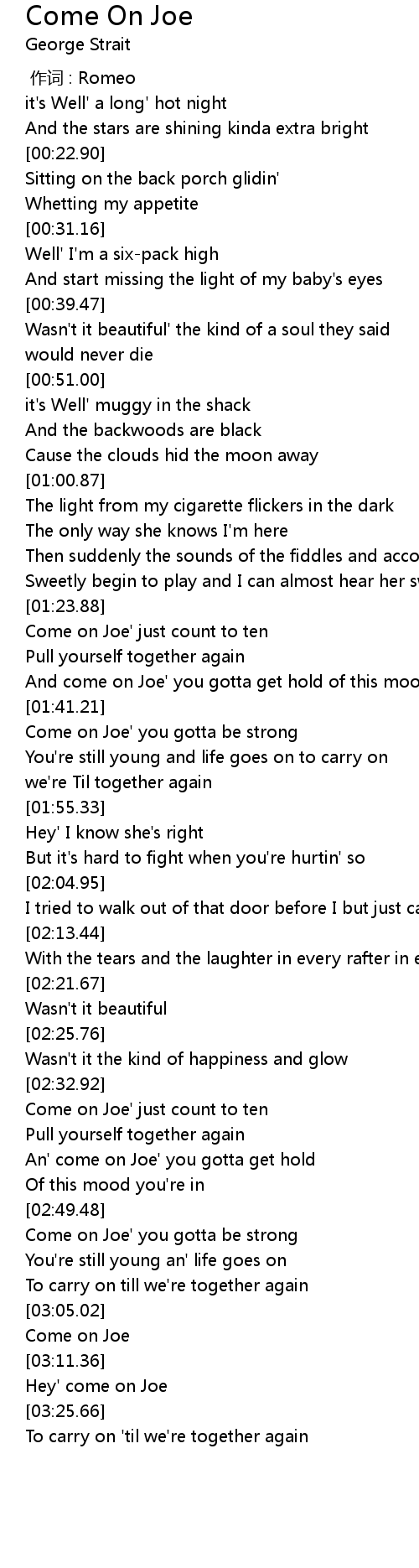 | [02:51.71] | Come on Joe' you gotta be strong |