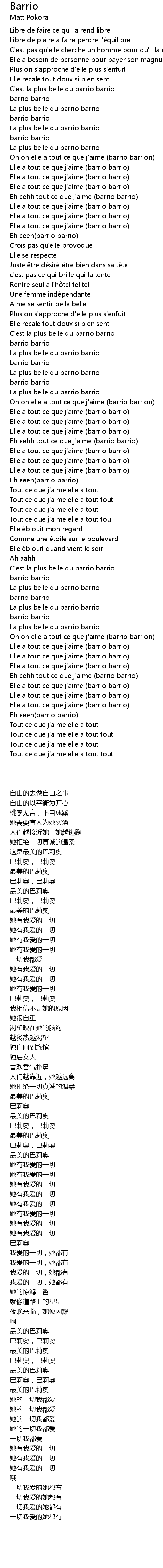 | [00:48.313] | Oh oh elle a tout ce que j' aime barrio barrion |