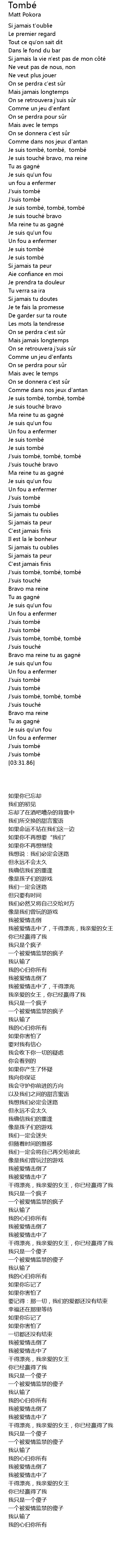 | [00:42.10] | Je suis tombe, tombe, tombe |