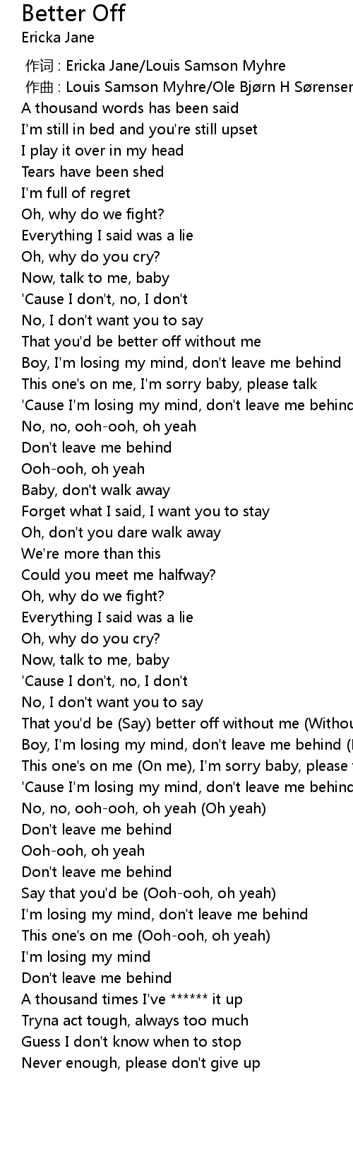 | [00:32.64] | That you'd be better off without me |