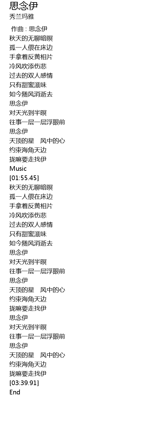 | [00:00.00] | 作曲 : 思念伊 |