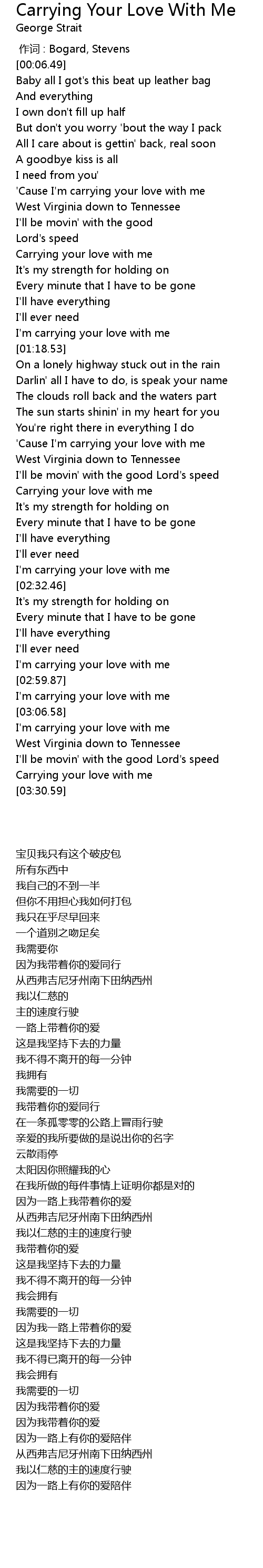 | [00:47.36] | ' Cause I' m carrying your love with me |