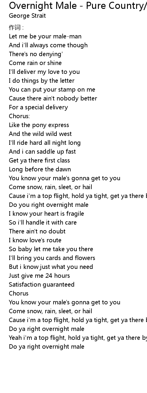 | Song | Overnight Male - Pure Country/Soundtrack Version |