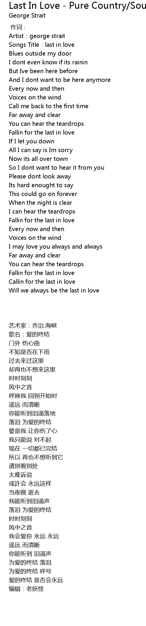 | [00:02.94] | Artist:george strait |
