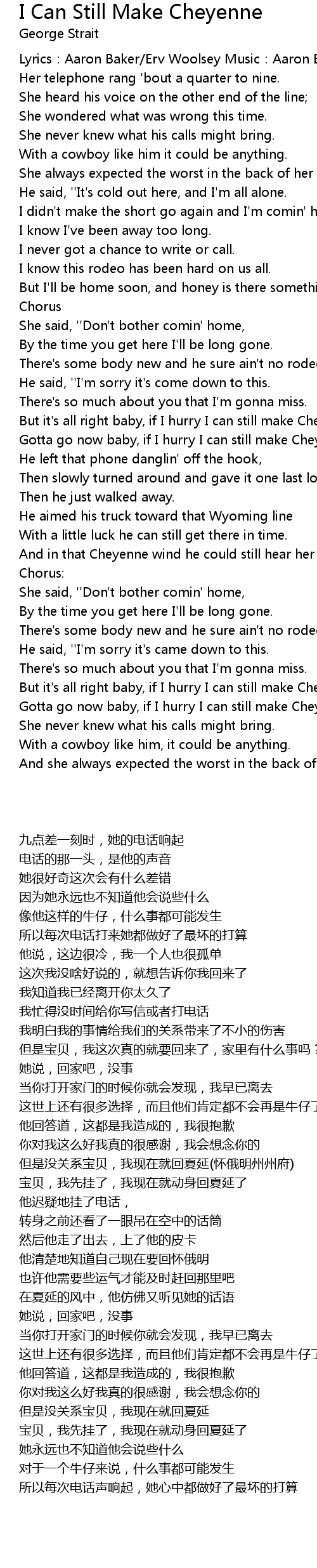 | But it' s all right baby, if I hurry I can still make Cheyenne. | |