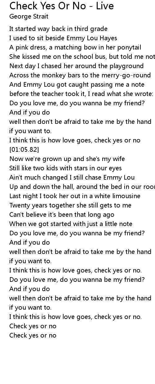 I think this is how love goes, check yes or no. |
