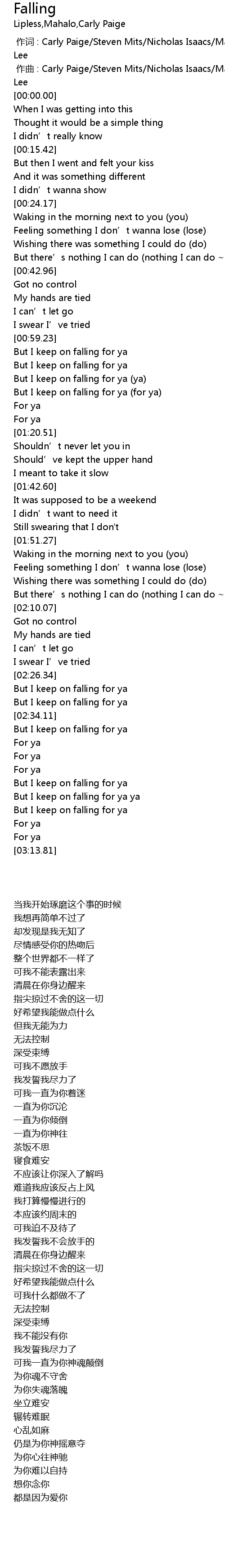 | [03:01.88] | But I keep on falling for ya ya |