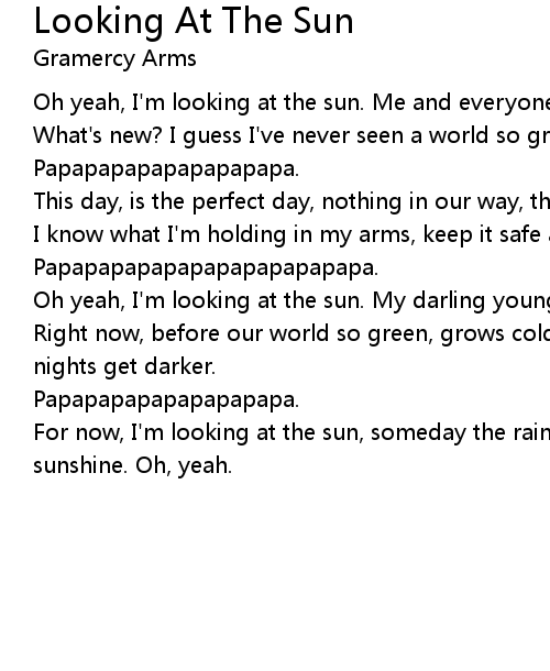 For now, I'm looking at the sun, someday the rain might come but I love this sunshine. Oh, yeah. |