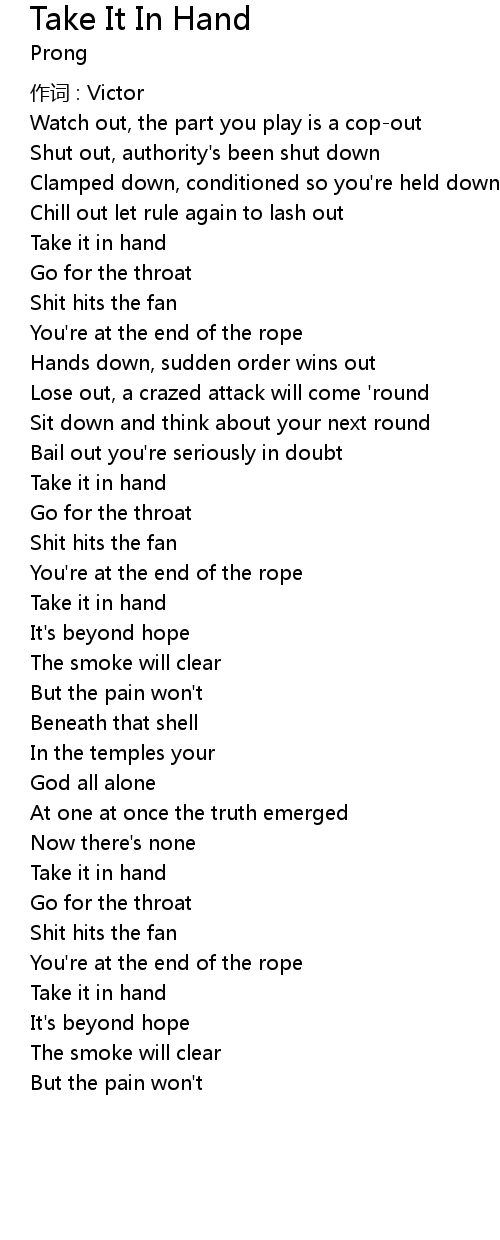 | Song | Take It In Hand |