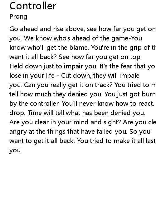 know who'll get the blame. You're in the grip of the controller. Do you really want it all back? See how far you get on top. |