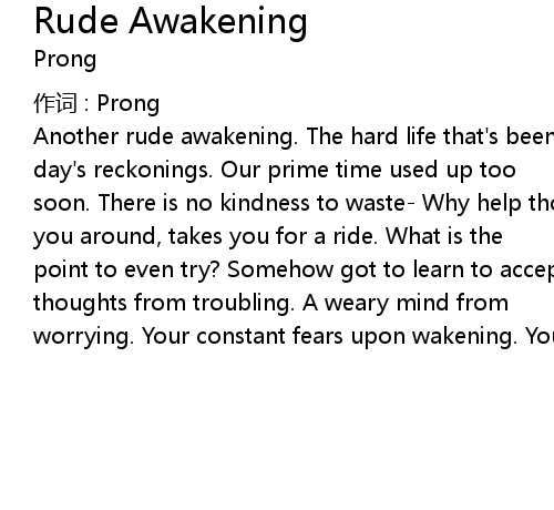| Another rude awakening. The hard life that's been our school. More of a cruel day's reckonings. Our prime time used up too | |