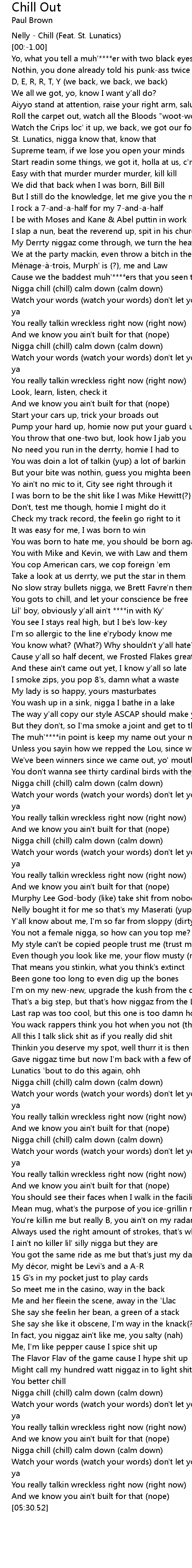| [00:-4.00] | Nelly - Chill (Feat. St. Lunatics) |