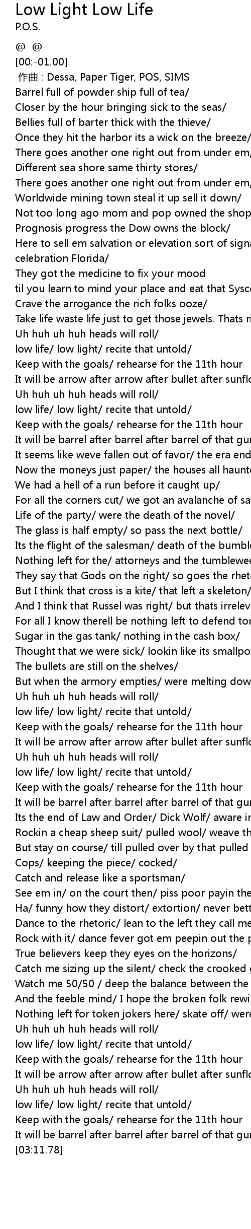 | [00:57.31] | low life/ low light/ recite that untold/ |
