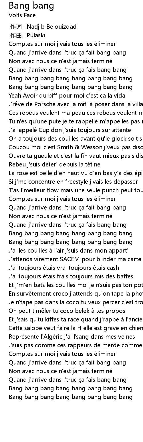 | [01:15.63] | Quand j'arrive dans l'truc ça fait bang bang |