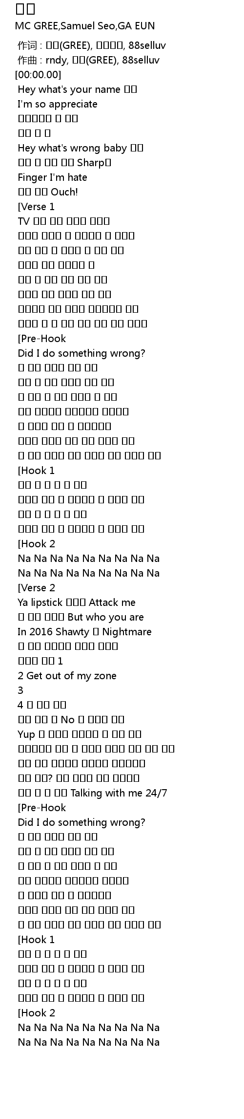 | [00:08.856] | Hey what's wrong baby 몰라 |