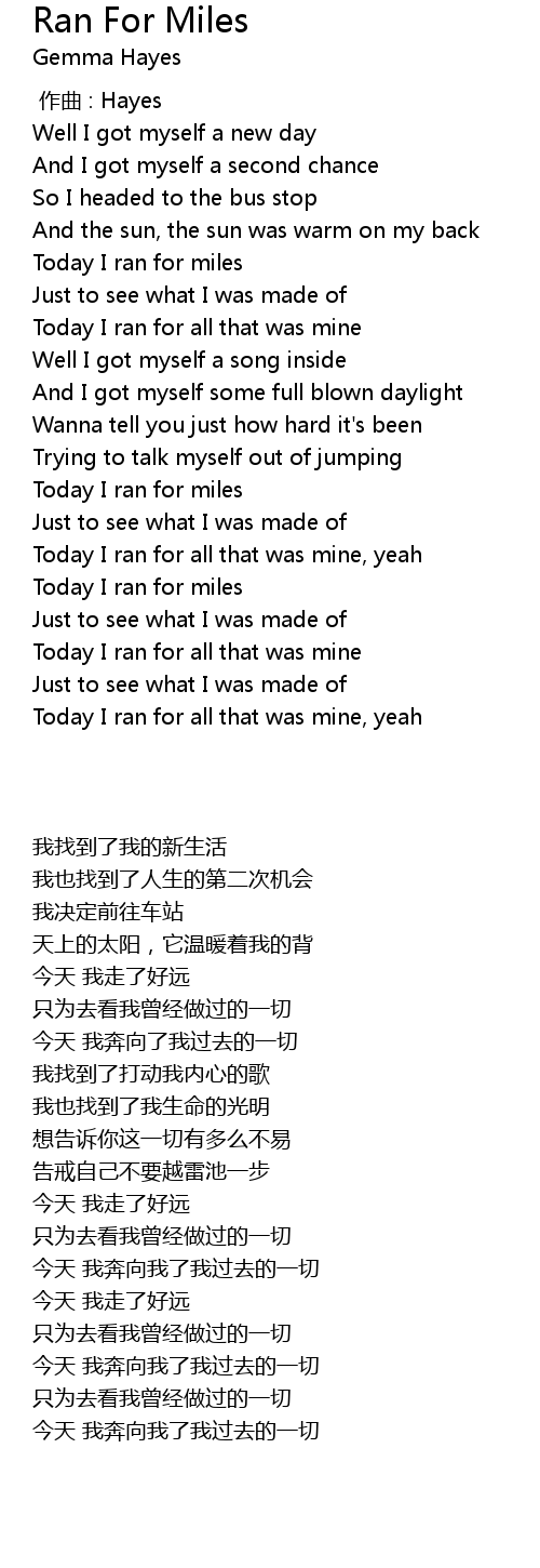 | [01:04.400] | Today I ran for miles |