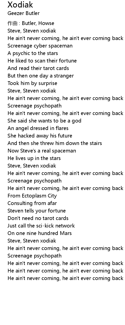 | He ain' t never coming, he ain' t ever coming back | |