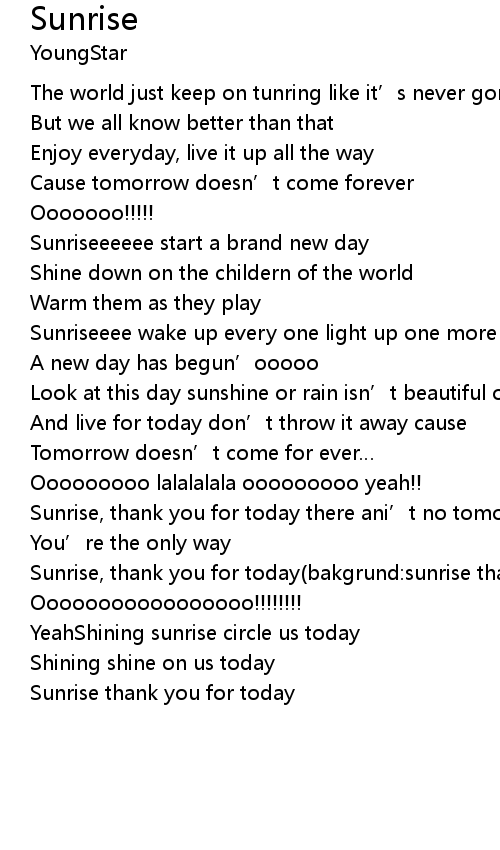 | Sunrise, thank you for today there ani’t no tomorrow without you | |