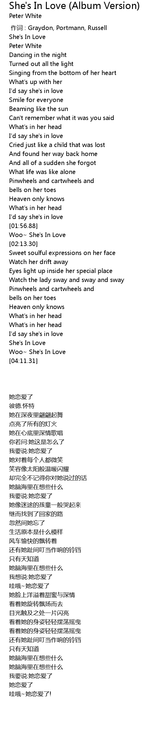 | [00:00.90] | She' s In Love |