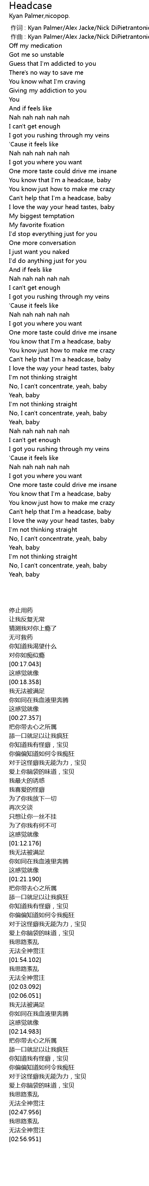 | [00:43.820] | Can' t help that I' m a headcase, baby |
