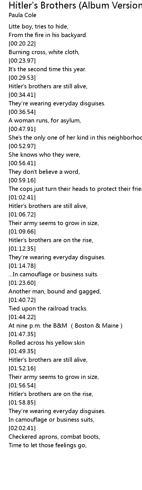| [01:50.66] | Hitler' s brothers are still alive, |