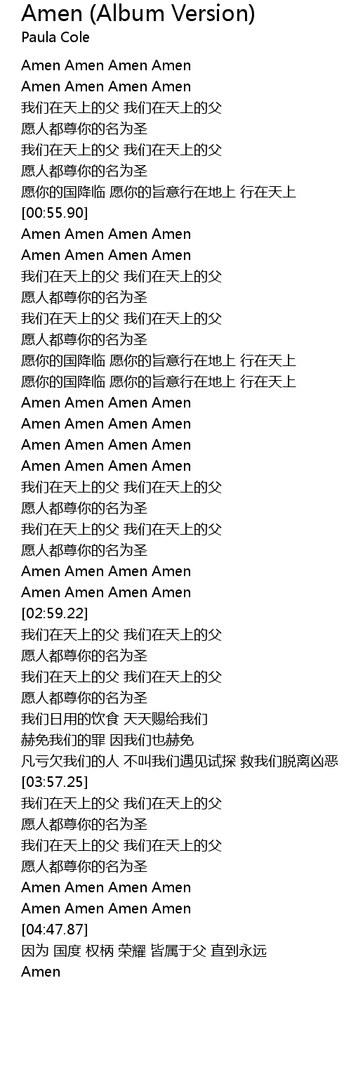 | [04:12.07] | 我们在天上的父 我们在天上的父 |