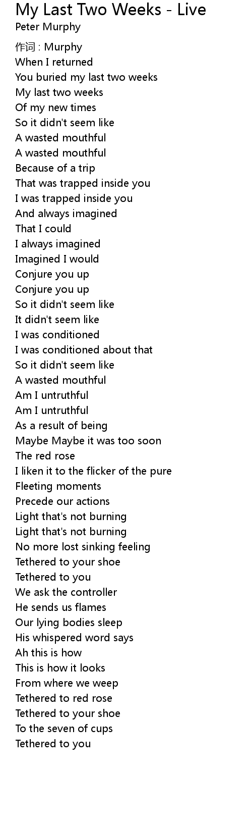 | Song | My Last Two Weeks - Live |