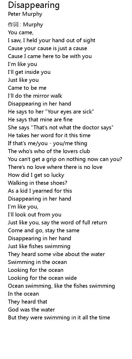 | Song | Disappearing |