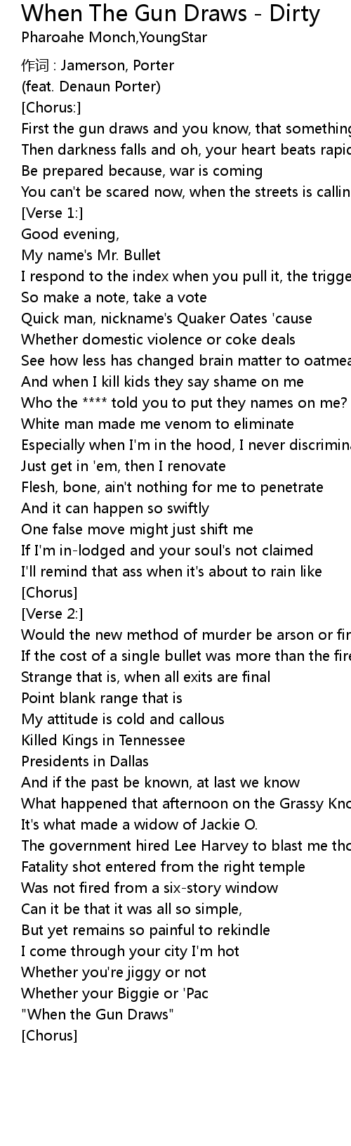 | First the gun draws and you know, that something' s happening | |
