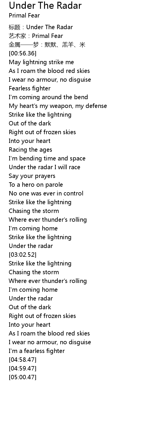 | [00:42.36] | 金属——梦:默默、羔羊、米 |