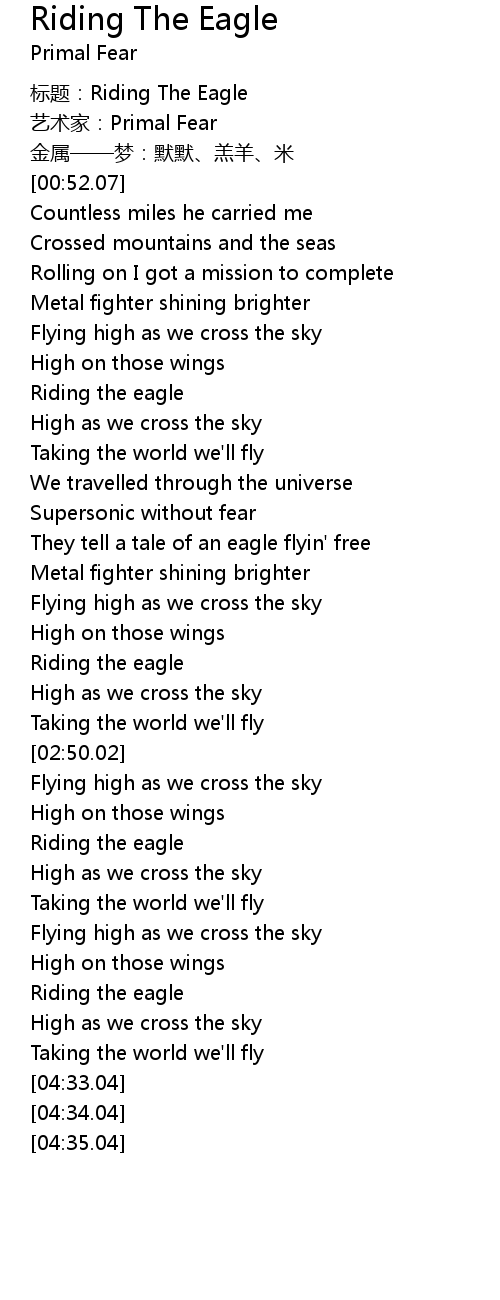 | [00:00.00] | biāo tí: Riding The Eagle |