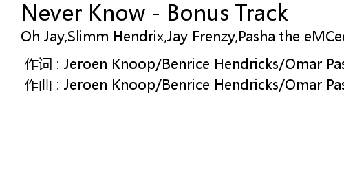 | Song | Never Know - Bonus Track |