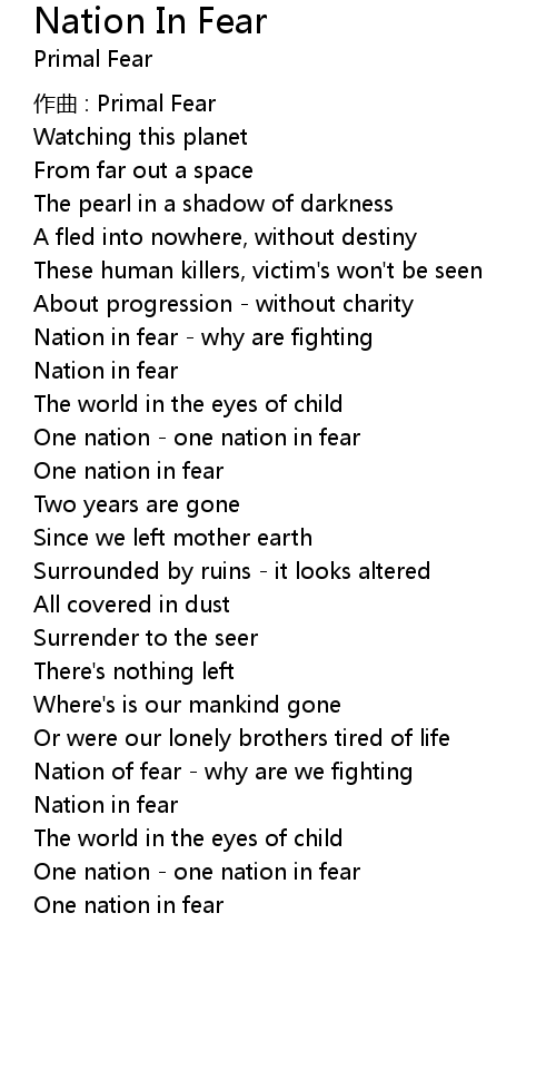 | Nation of fear why are we fighting | |