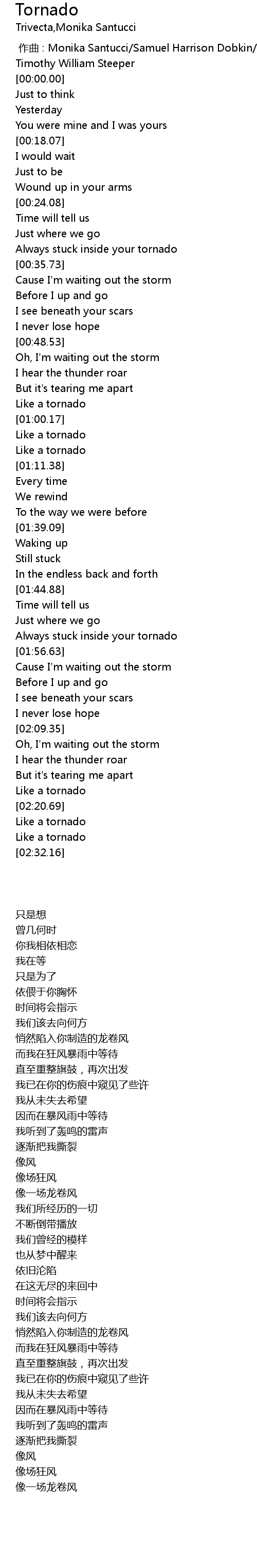 | [02:18.13] | Like a tornado |